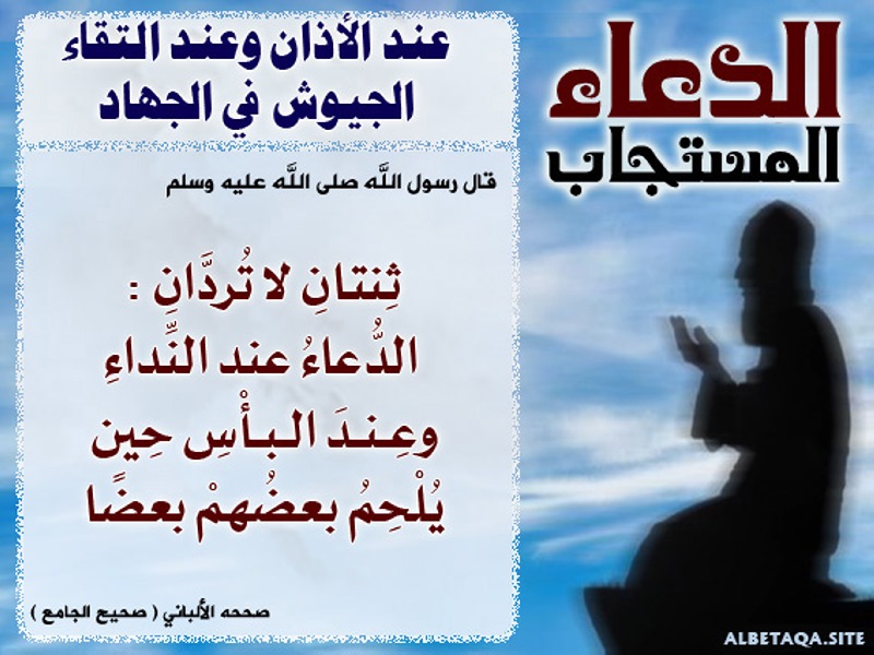 الدعاء المستجاب عند الأذان وعند التقاء الجيوش في الجهاد موقع البطاقة الدعوي