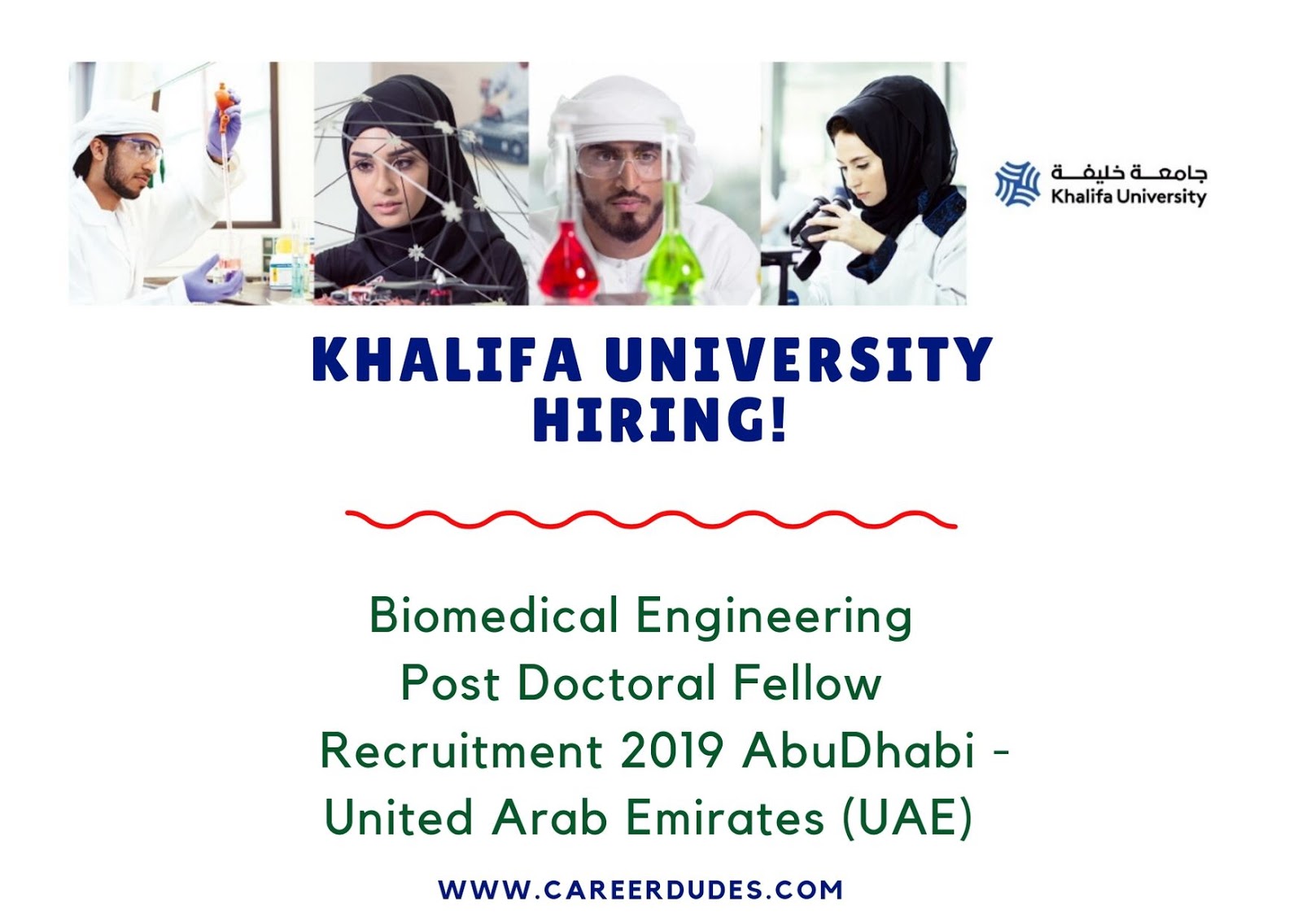 Biomedical Engineering Post Doctoral Fellow Recruitment 2019 At Khalifa University In Abudhabi United Arab Emirates Uae Apply Now Careerdudes Com Fastest Growing Jobs Portal Find Your Dream Jobs